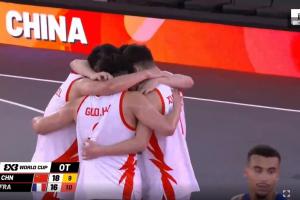 加时赛中国队连得2分,赢下法国,并以小组第一身份晋级,也是历史首次进入三人篮球世界杯的淘汰赛。