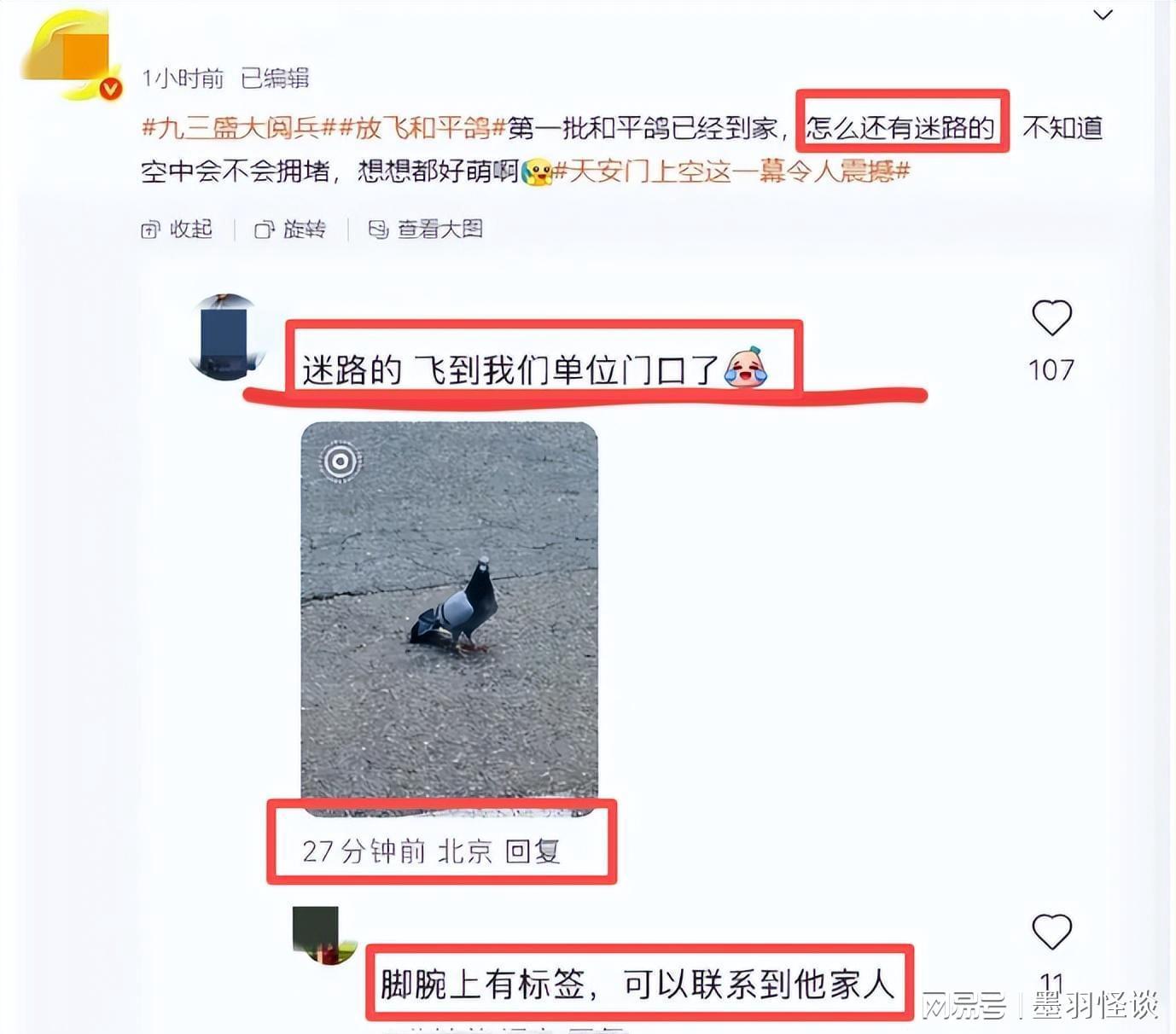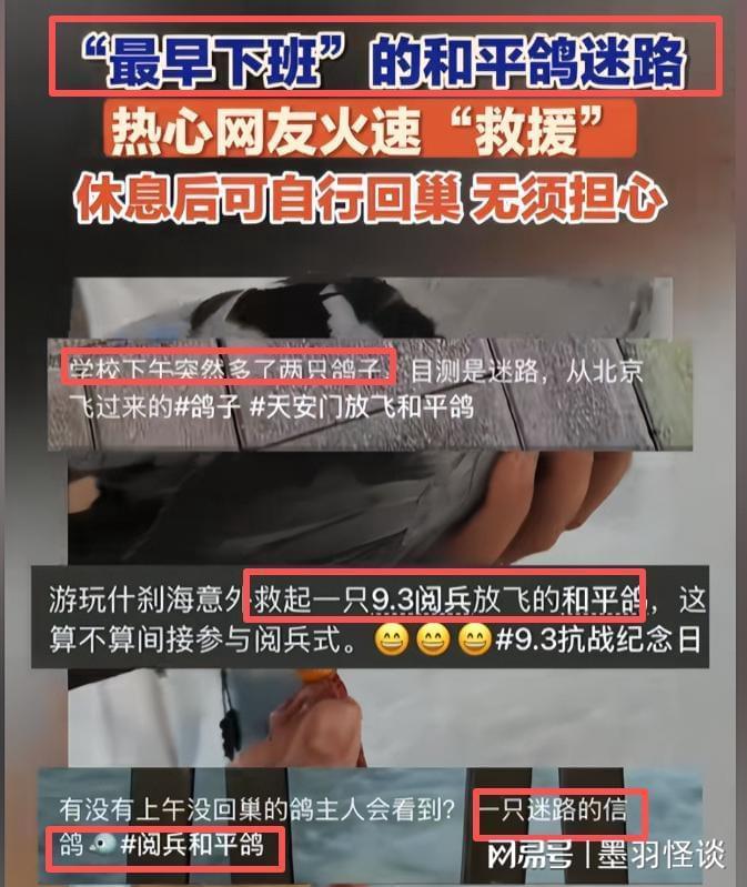 前言前两天的九三阅兵那是办得相当圆满,8万羽和平鸽和8万只气球一起飞向天空,那场面老壮观了。根据往年的经验,散场之后鸽子的任务就算圆满完成,不出意外的情况下它们就可以“功成身退”安心回家了。然而,谁也没想到的是意外还是发生了,今年和平鸽放飞之后,竟然有几十只走丢了,于是北京市民纷纷开启了漫...