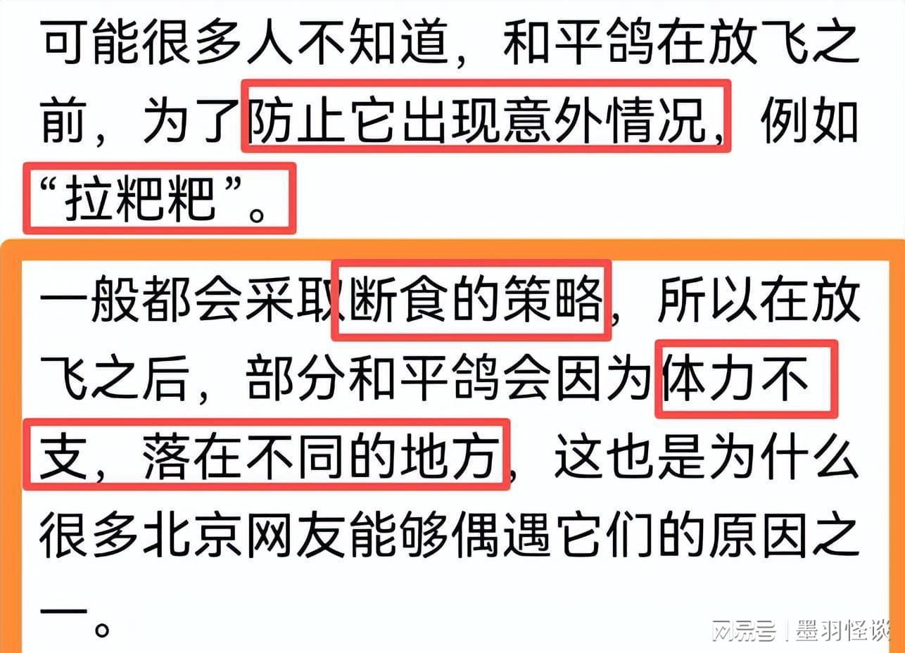 首先是“饿肚子”闹的,为了不让鸽子在飞行的时候排泄,弄脏广场,工作人员在放飞前一天晚上就停了食,让鸽子空着肚子去“执行任务”,可空腹飞那么久,鸽子体力跟不上,飞着飞着就没劲了,只能找个地方歇脚,一歇下来,就忘了回家的方向。